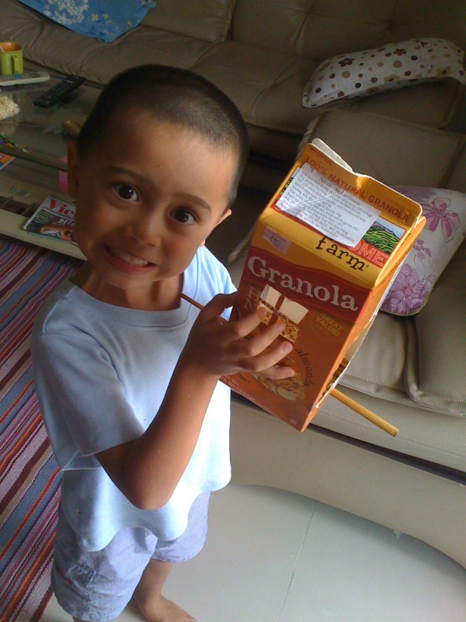 J with the birdhouse we made. No birds yet!
