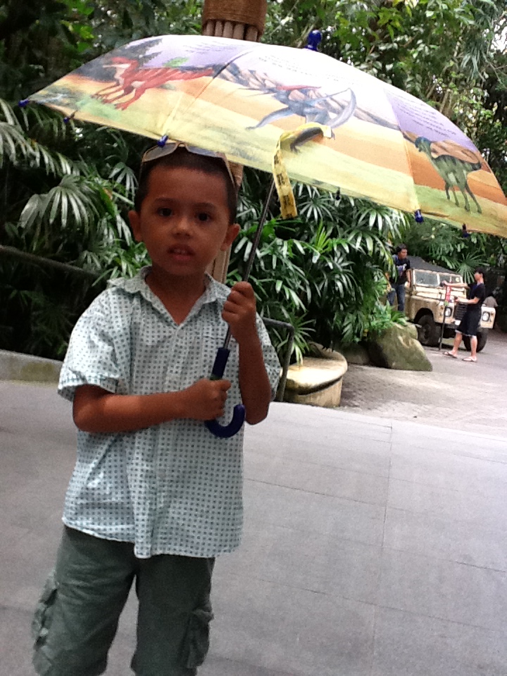 Jacob at the zoo with his new dinosaur umbrella. He’d wanted an umbrella for a long time and was VERY happy to get one with dinosaurs on it.