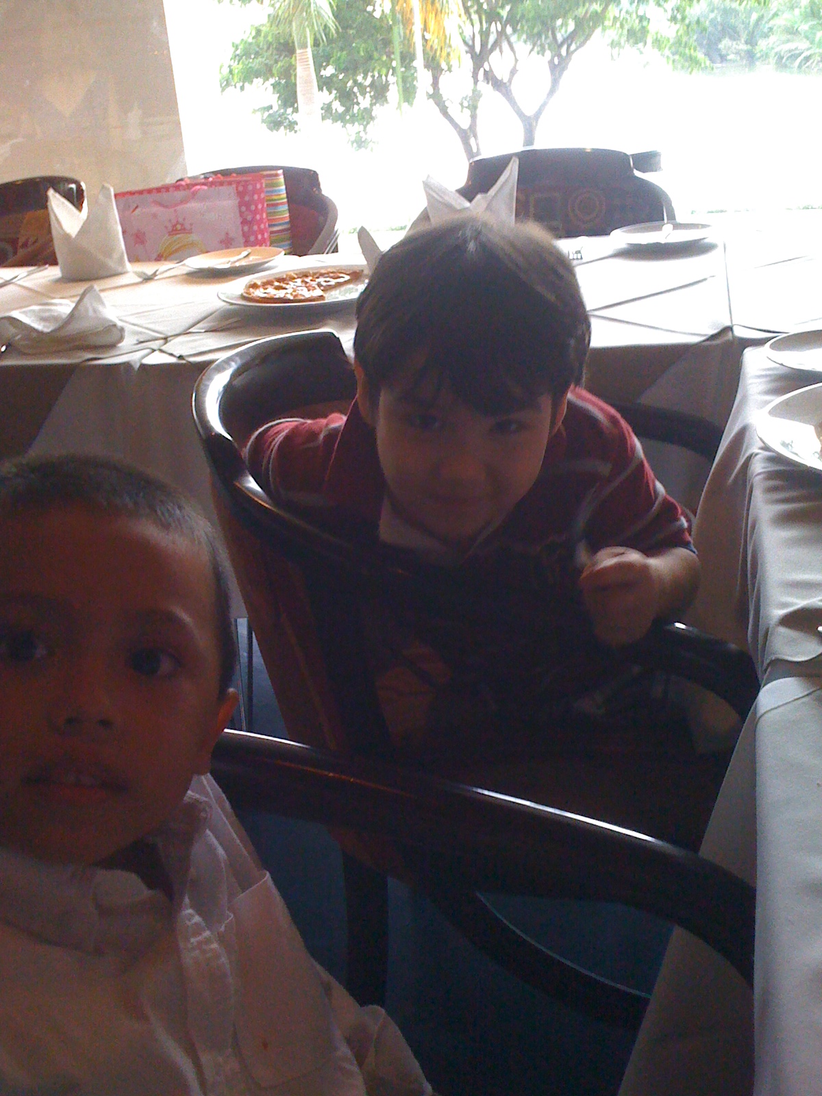 Jacob and his friend Alaric at a birthday party. They love to talk about chicken nuggets and gross stuff. Ah – boys.