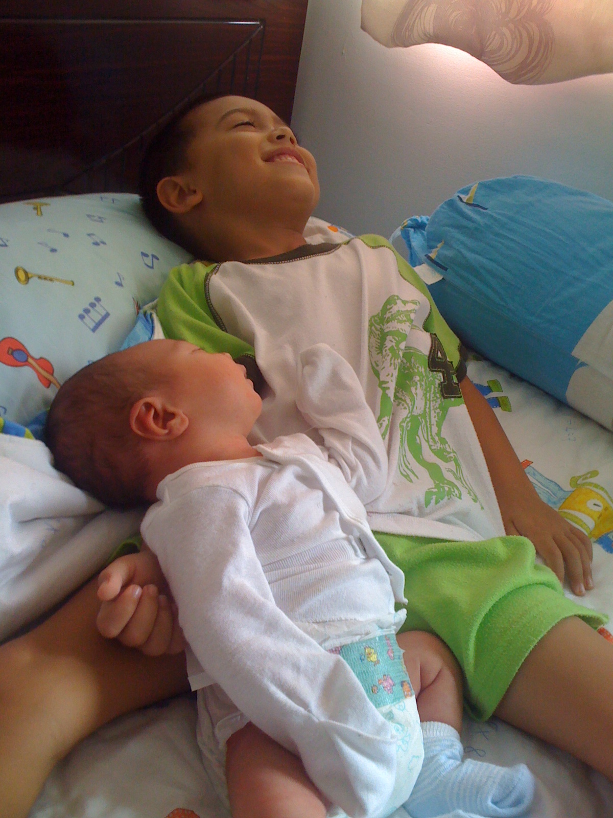 Jacob pretending to sleep like James. It almost looks like a before/after picture with 6 or so years inbetween.