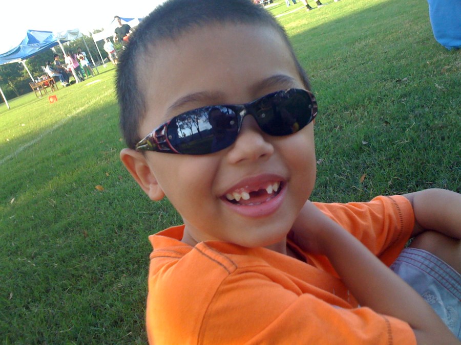 Jacob at an outdoor sports fair Dad took him to at RMIT University sports field.