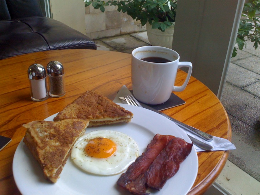 Cinnamon french toast, crispy bacon, a good egg and a great cup of coffee. Dad’s in Heaven.