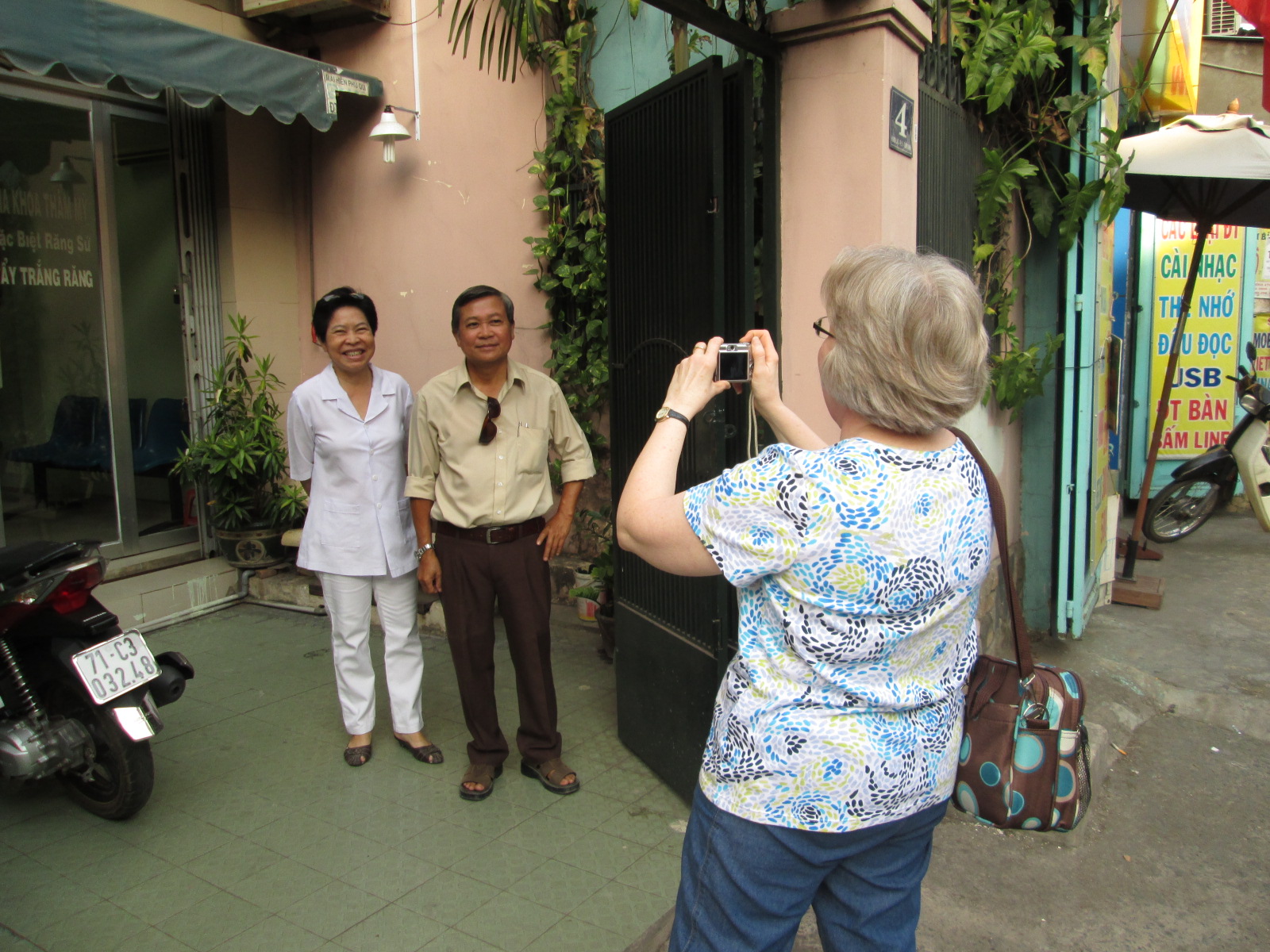 Lam’s Mom and Dad in front of their house. Aunt Karen capturing the moment.