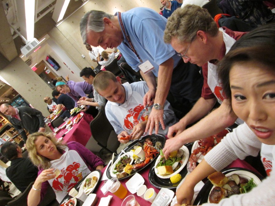 Clambake! (Which means lobster actually – and our teacher showing a guy from Texas how to shell a lobster)