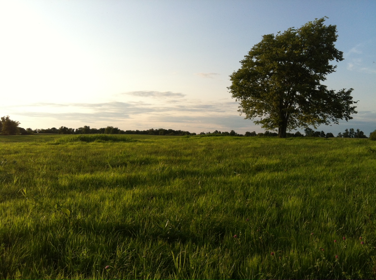 A classic field shot. The field is showing off its sheen green-ness against a pale dusky backdrop