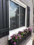 Our color theme this year is purple and white. We hope to have more white flowers on our front porch this summer. African daisies in the window flower box White and purple verbena in hanging baskets Purple petunias in pots