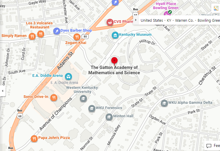 Here is an interactive map of the location of Gatton Academy on the campus of WKU in Bowling Green: