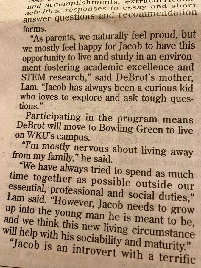 Jacob’s Gatton Academy article is on the front page of the Central Kentucky News-Journal