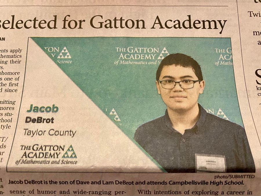 Jacob’s Gatton Academy article is on the front page of the Central Kentucky News-Journal